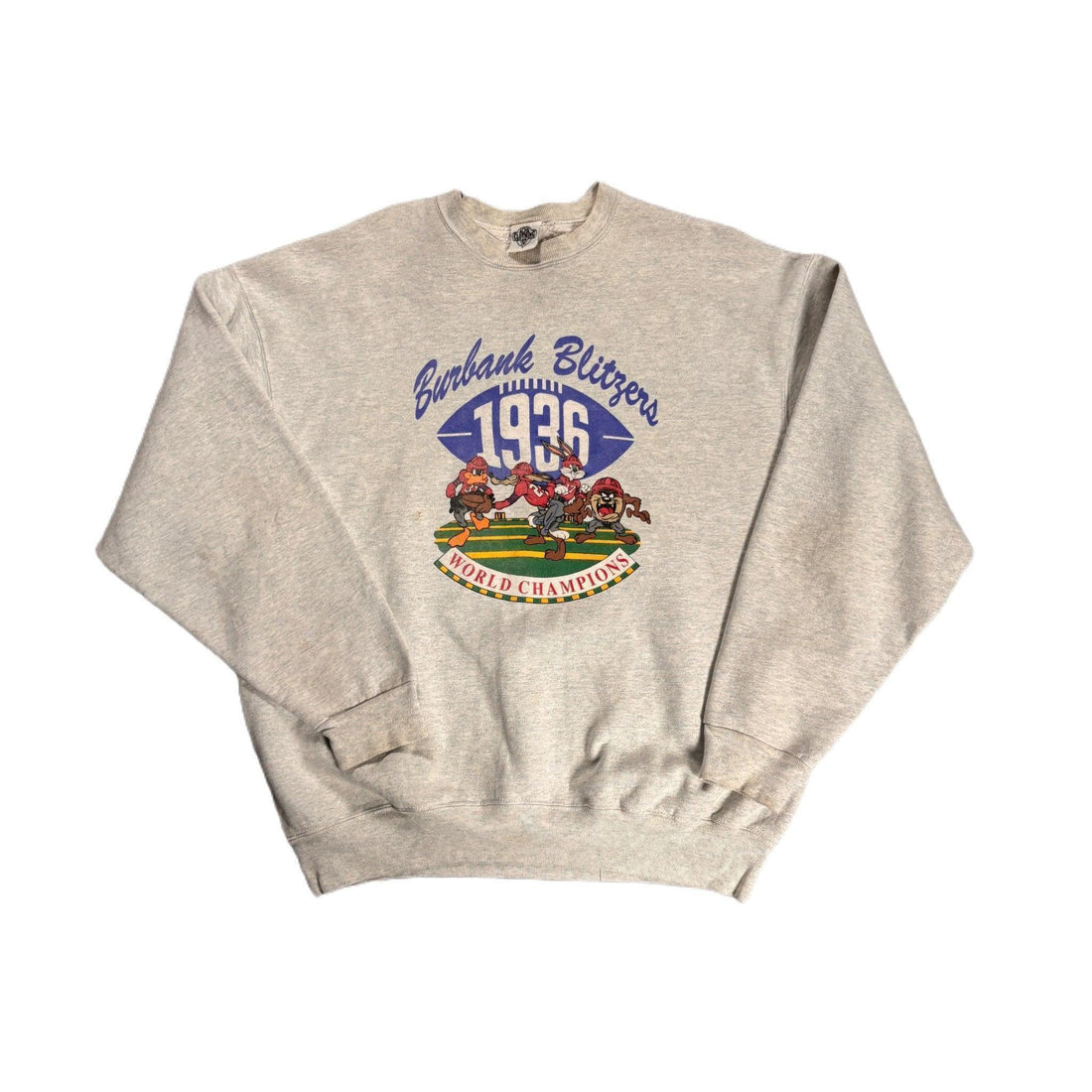 Vintage 90s Grey USA Looney Graphic Sweatshirt - XL (Recommended Size - L)
