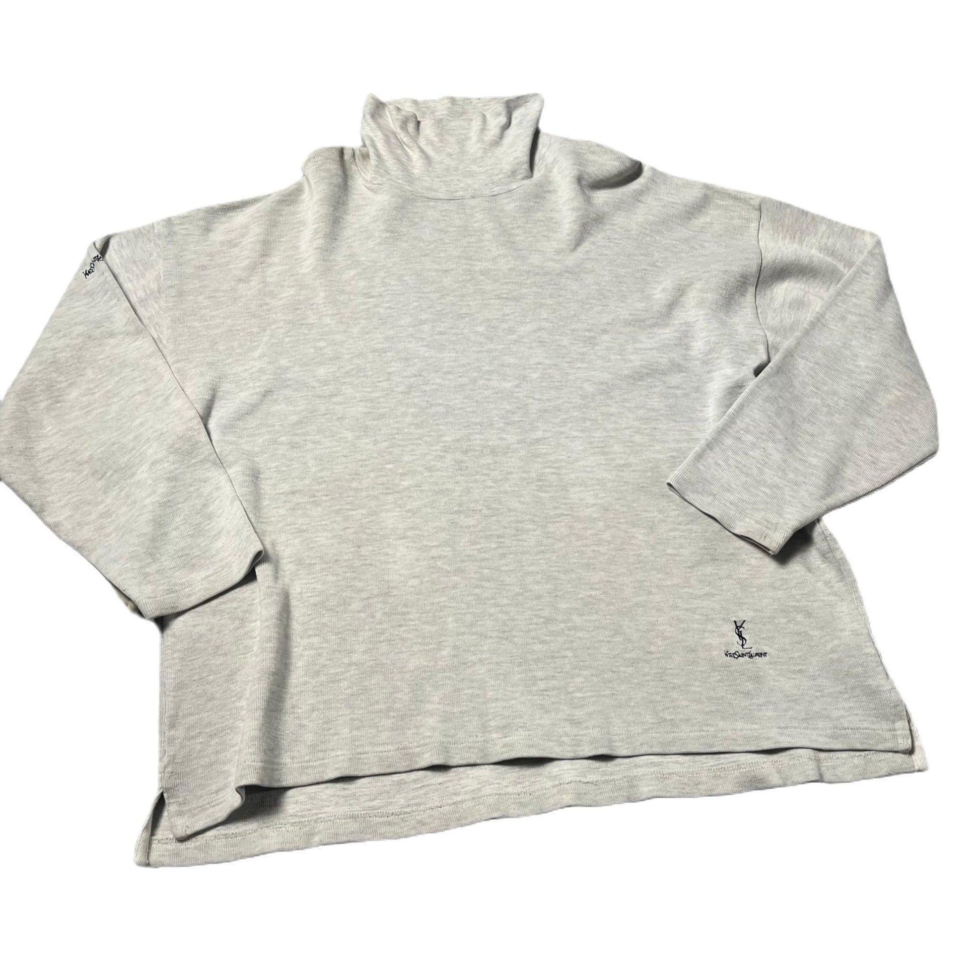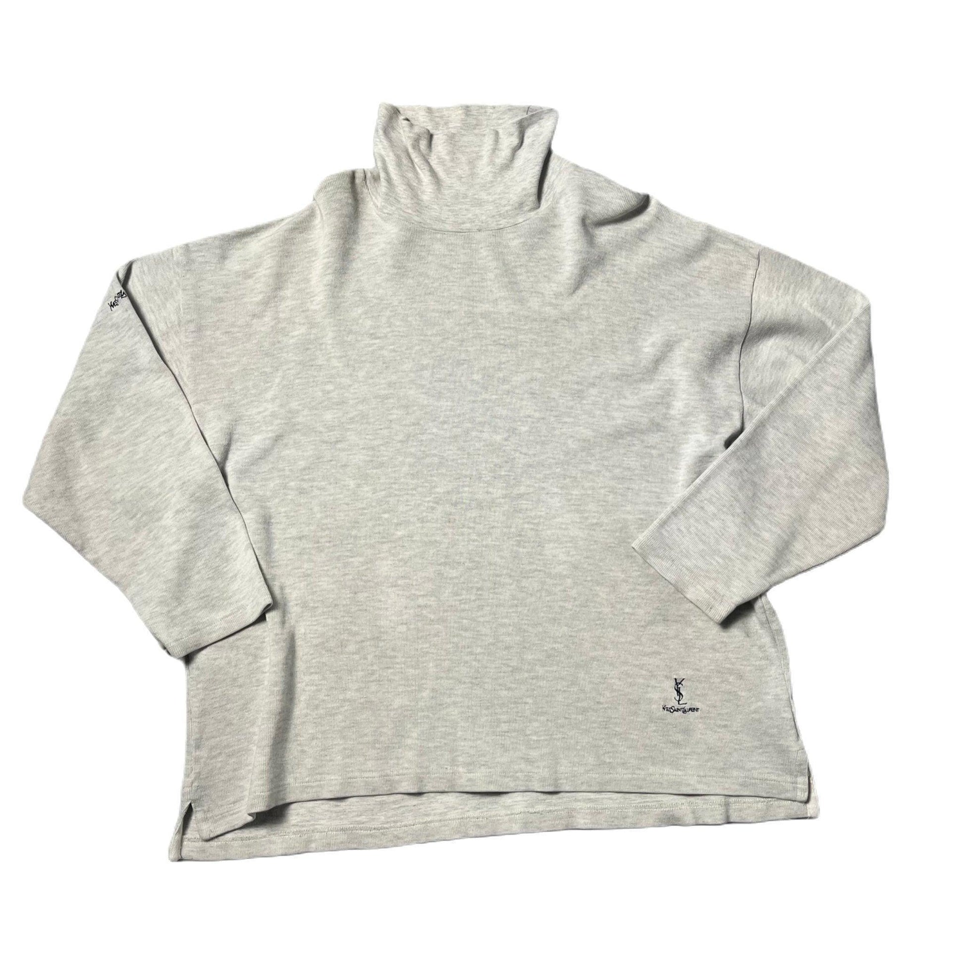 Vintage Grey Yves Saint Laurent (YSL) Mock Neck Sweatshirt - XL
